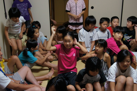 | 全員によるジャンケン大会 ちょっと盛り上がっちゃいました! 「ジャンケン・・・グー」 「ジャンケン・・・グー」 「ジャンケン・・・グー」 「ジャンケン・・・グー」 そうです、グーしかだしてないんです。 |