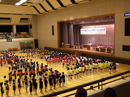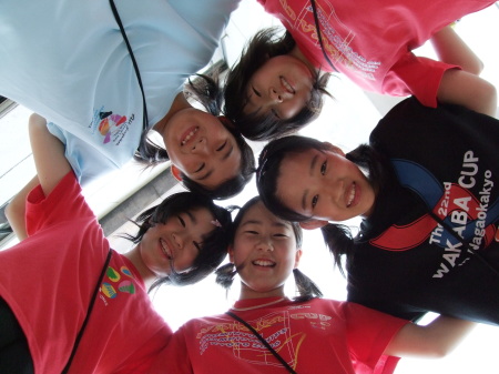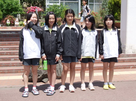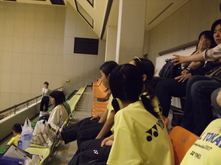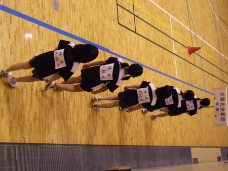 | 円陣を組んで「勝つぞ〜オ〜ッ!」なんて練習ではありません。 他のチームは声出しの練習してました、団体戦は応援合戦でもあるんだけどな〜。 |