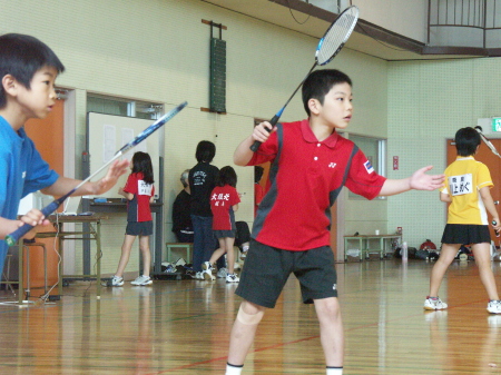 | やはりレフティーは有利ですね、特にダブルスでは・・・ 小学生レベルでは相手を把握してバックに打つことが難しいみたいですね!サッチのフォアに・・・ |