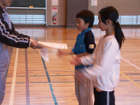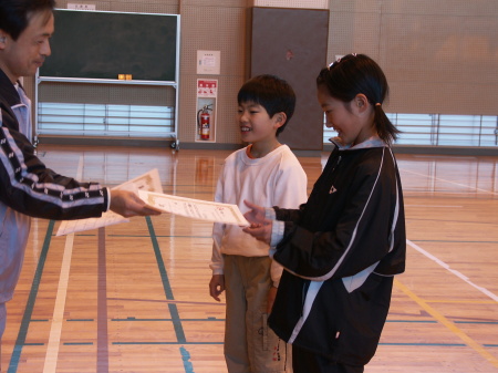 | うん?男子諸君、女子より小さ過ぎ! 今回は全部男女ペアの優勝でした。 |
