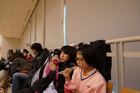 | あら親子3人でお食事中ですか(*^^)v 結惟、審判お手伝いご苦労様! |