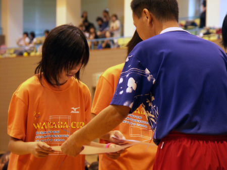 | 今年の表彰式は時間短縮のため4組同時に賞状を渡してました。 はっきり言って写真がとれないぞ〜(T_T) |