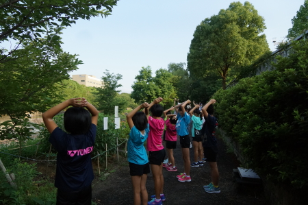 | 朝の散歩はホテル周辺 ラジオ体操に参加!? |
